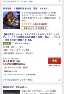 そして、予約ボタンを押して通常の予約手続きをすれば完了です。ここまでの流れで35%割引のGo Toトラベルの対象として恩恵を受けることができます。