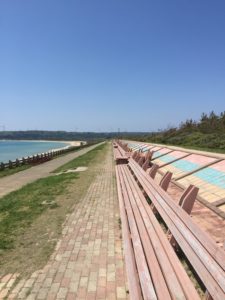 この長いベンチに座り、一人海を眺めていると、目の前の大海原を独り占めしたような気分になります。