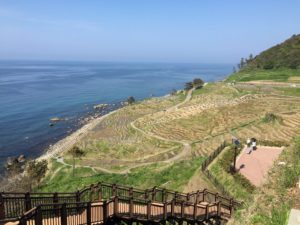 その名の通り、日本海に面した斜面に小さな田が重なり、海岸まで続くその景色は絶景といえるでしょう。