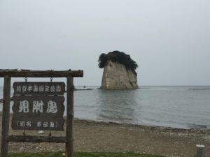 名前の由来は、「見つけた」というのが見附島(みつけじま)だそうですが、外観からは別名「軍艦島」と名付けられています。